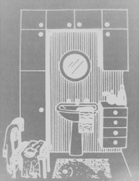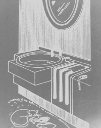 В первую очередь Вам необходимо организовать от стены до стены доску туалетного столика со врезанным умывальником. На передней стенке туалетного стола крепятся поручни для полотенец (и тряпок для Вашей будущей работы), на боковых стенках – навесные полочки как для туалетных принадлежностей, так и для инструментов и приспособлений фитодизайна. По размерам ванны Вы можете приготовить мобильный щит из оргстекла, пластика, который будет Вашим рабочим столом в рабочее время. Безболезненно сняв его, Вы возвращаете ванну к исходным функциям купания и стирки. Полочки на передней стенке Ванны прекрасно подойдут для многочисленных инструментов и приспособлений вашей импровизированной мастерской. Традиционные встроенные шкафчики вокруг умывальника, труб, унитаза, консольные сушилки значительно расширяют складской резерв и помогут Вам в сравнительно небольшой площади сан. узла организовать успешно уголок для творчества.